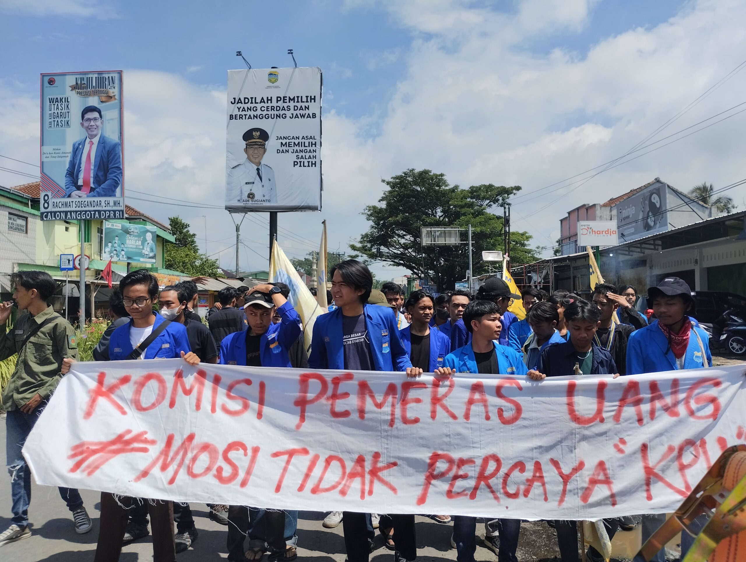 Gabungan mahasiswa dari beberapa organisasi melakukan demonstrasi di depan kantor KPU kabupaten Tasikmalaya pada Senin (5 /02/ 2024)
