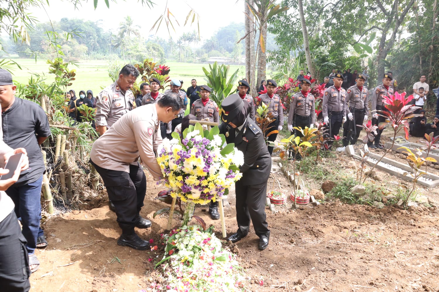 Selesai disemayamkan di rumah duka, selanjutnya jenazah di berangkatkan untuk dikebumikan di TPU Cigantang, melalui prosesi pemakaman secara dinas Kepolisian.