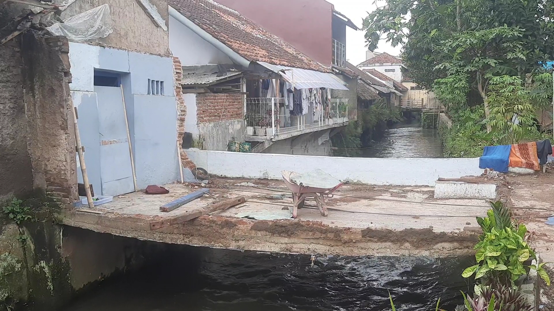 “Bangunan atap dan dinding temboknya sudah beres dirobohkan namun bangunan lantainya yang dianggap tersentuh air selokan saat banjir belum dirobohkan, itu mungkin perlu biaya dan kami juga butuh membikin dapur diruangan yang lain, namun bingung tidak ada biaya” kata Pasutri bp Atis dan Ibu Beni kepada wartawan Sabtu (28/1/2023).