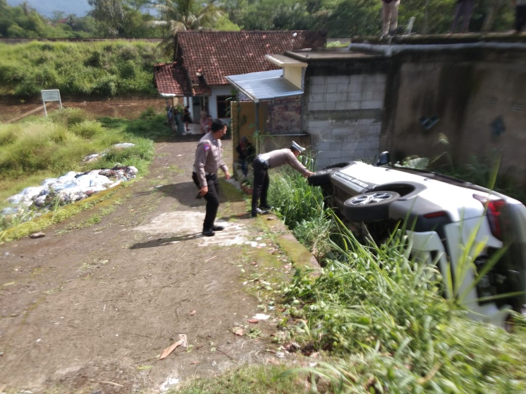 “Karena benturan keras, sepeda motor terpental hingga masuk jurang sedalam 3 meter dan mobil minibus juga terguling ke lahan kosong,” jelasnya